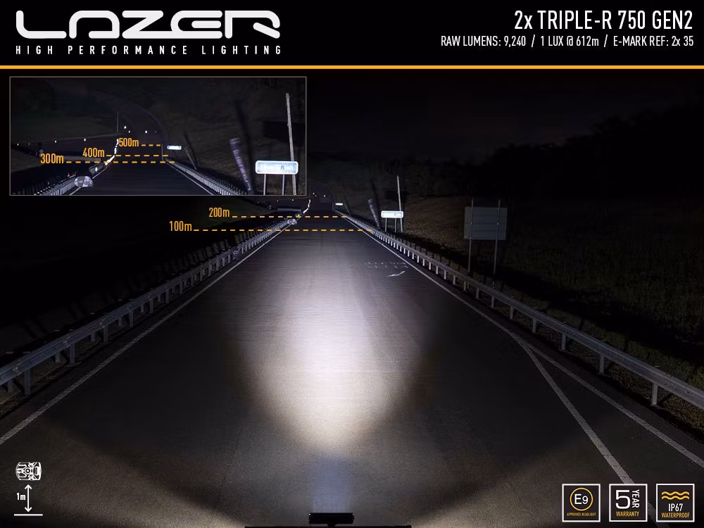 Lazer lämnar 5 års garanti på sina LED-ramper. Från materialval fram till produktion samt ett kraftfullt testprogram har dessa lampor byggts för att vara de tuffaste lamporna på marknaden med ett kraftigt aluminiumhus, polykarbonatlinser och IP-klass 67.